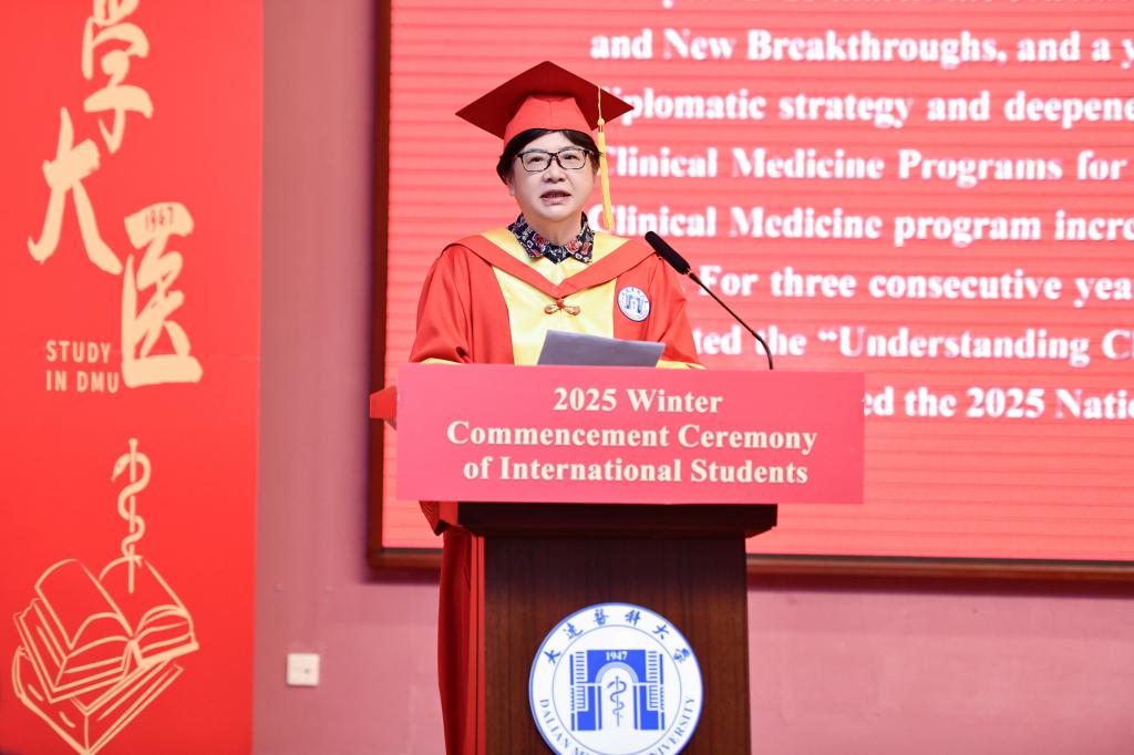 对顺利完成学业的各位学子表示热烈祝贺,她期望毕业生们以医者仁心为舵,以时代使命为帆,为促进国际医学交流、构建人类卫生健康共同体贡献力量。